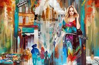 "SALE" is een mixed-media kunstwerk dat de pulserende energie en hectiek van het stedelijk winkelen vangt. De compositie is een dynamische collage van stadsleven, mode en consumentisme, waarin de felle kleuren en fragmenten van advertenties een verhaal vertellen van verlangen en de jacht naar koopjes.