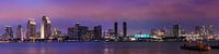 San Diego is een prachtige Zuid-Californische stad met geschiedenis en vele bezienswaardigheden. Vanaf het offshore-schiereiland Coronado geniet men van een charmant uitzicht op de wolkenkrabbers van Downtown. Idyllische avondstemming.
