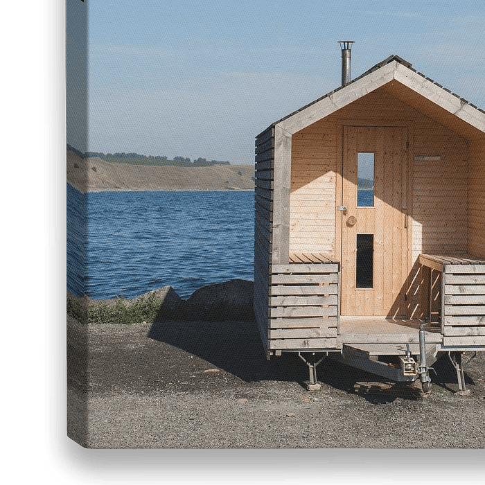 "Tiny House" sauna op wielen in Sweden, naast de zee