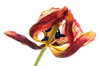 Verwelking tulpen zijn zo zacht en delicaat. . . duidelijk naar voren de aderen van de bloemblaadjes. Bijna nog mooier dan in de verse toestand. . .