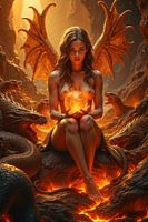 Koop dit digital art kunstwerk SERAPHYRA - De Jonge Drakenmoeder met een Gloeiend Drakenei van INFERAURUM als reproductie geprint op canvas, aluminium dibond, (ingelijste) fotoprint, behang en ArtFrame. Voor jou op maat geprint in Fine-Art kwaliteit.