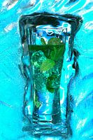 Mojito, cocktail, blauw, groen, ijs, alcohol, drank, felle kleuren, blauwe kleur, groene kleur, blauwachtig, groenachtig, gemengde drank, Cuba, glas, munt, fris, focus, close up, licht blauw