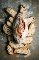 Rustiek broodbord met brood op donkere achtergrond, rustiek stijl, brood, donkere achtergrond, food art, lekker eten, vers brood, bovenaanzicht, vezelrijk
