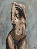 Het is een schilderij van een vrouw die zich zelfverzekerd voelt in haar lichaam. Het originele schilderij hangt in een galerie in Amsterdam. Ik hoop dat je het mooi vindt:)