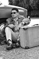Dit werk is geinspireerd op de zestiger jaren met een kleine moderne touch. Je denkt bij dit beeld al snel aan een scene uit een film of aan een acteur uit die tijd.