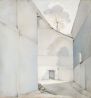 AQUARELSCHILDERIJ VAN EEN EENVOUDIG STEEGJE.