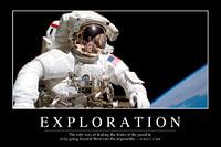 Exploratie - Inspirerende Quote en Motiverende Poster. De tekst luidt: De enige manier om de grenzen van het mogelijke te vinden is door ze te overschrijden en het onmogelijke te betreden. ~ Arthur C. Clark