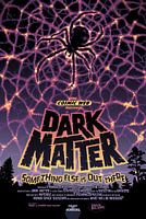 Dark Matter Poster. Er sluipt iets vreemds en mysterieus door de kosmos. Wetenschappers noemen het donkere materie. Het zit verspreid in een ingewikkeld web dat het skelet van ons universum vormt. Donkere materie is onzichtbaar en onthult zijn aanwezigheid alleen door te duwen en te trekken aan objecten die we kunnen zien.