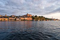 De skyline van de wijk Södermalm bij zonsondergang, Stockholm, Zweden