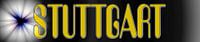 Poster met de naam van de Duitse stad STUTTGART op een donkere achtergrond en een witte bloem