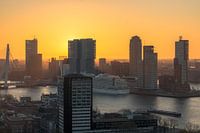 Het eerste licht van de dag op de Kop van Zuid in Rotterdam. De foto is gemaakt tijdens een zonsopgang vanaf de euromast.