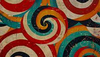 “Swirl” is een dynamisch en speels kunstwerk dat de levendigheid van klassieke kermisattracties oproept. Het schilderij kenmerkt zich door een samenspel van felle kleuren – vurige roden, zonnige gelen, en diepe blauwen – die elkaar raken en overvloeien in organische, draaiende patronen. De compositie wekt een gevoel van beweging en energie.