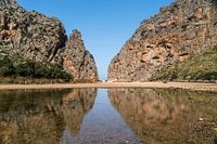 Torrent de Pareis door de kloof bij Sa Calobra, Serra de Tramuntana, Mallorca, Balearen, Spanje | Torrent de Pareis and Gorge, Sa Calobra, Serra de Tramuntana, Mallorca, Balearen, Spanje,