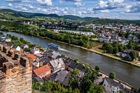 Uitzicht van Saarburg naar de Saarlus met Saarburg