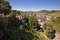 Vergezicht over de stad Saarburg vanaf Kasteel Saarburg (Duitsland).