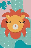 Hier zie je een dieren kinderposter met zachte roze en groene kleuren op de achtergrond. Perfect voor in de kinderkamer!