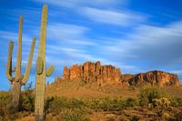 Koop dit landschapskunstwerk Saguaro Cactus in de Superstition Mountains in Lost Dutchman State Park, Arizona van Henk Meijer Photography op canvas, aluminium dibond, (ingelijste) fotoprint, behang en ArtFrame, op maat geprint in Fine-Art kwaliteit.