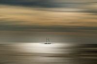 Waar een waterig zonnetje verwoede pogingen doet om de Waddenzee te verlichten, zoekt een zeilboot van de bruine vloot het ruime sop