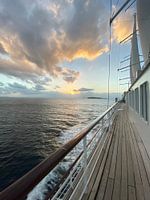 Deze foto is genomen vanop een boot in de Caraïbische zee. Je kan zo de golven en de rust van de zee voelen.