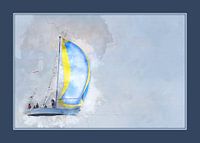 Digitaal kunstwerk van een zeilboot voor de kust van Vlissingen met een passe-partout (met name geschikt om het te laten afdrukken als fotoprint of op plexiglas). Dit werk is ook beschikbaar zonder een passe-partout (met name geschikt voor het laten afdrukken op canvasdoek).