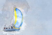 Digitaal kunstwerk van een zeilboot voor de kust van Vlissingen zonder passe-partout (met name geschikt om het te laten afdrukken op een canvasdoek). Dit werk is ook beschikbaar met een passe-partout (met name geschikt voor het laten afdrukken als fotoprint of op plexiglas).