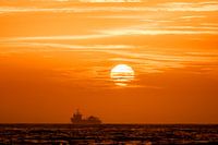 Een supplier vertrekt uit de haven van Den Helder richting een booreiland.