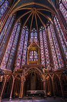 Prachtige opname van het paarse glas in lood interieur van de Sainte-Chapelle kapel in Parijs, Frankrijk