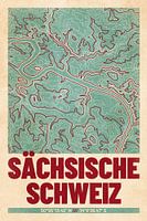 Saksisch Zwitserland in het Elbezandsteengebergte als topografische kaart. Kaart in retrostijl met hoogtelijnen. Stijlvolle print voor wandelaars, bergbeklimmers en outdoorfans - ook als cadeau-idee!