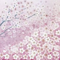Abstracte bewerking in zacht roze tinten op canvas textuur van Sakura,de Japanse naam voor de kersenbomen Prunus serrulata.