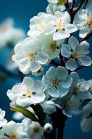 Een delicate tak van een Japanse kersenbloesem in volle bloei. De zachte witte bloesems contrasteren prachtig tegen een rustige achtergrond, waardoor de natuurlijke schoonheid en sereniteit van de lente in Japan wordt vastgelegd. Deze afbeelding zou een elegante aanvulling zijn op elke ruimte en is een must-have voor liefhebbers van natuur en kunst.
