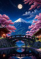 Stap in tijdloos Japan met Moonlit Bridge to Mount Fuji. Dit adembenemende kunstwerk combineert de elegantie van traditionele architectuur met de grootsheid van de natuur. Een stenen en houten…