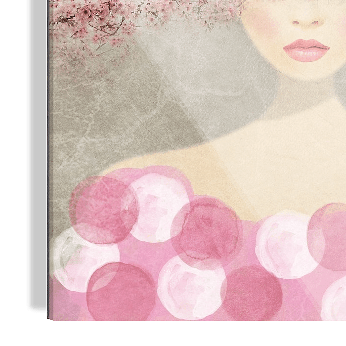 Illustratief, surrealistisch portret met een kapsel van kersenbloesem