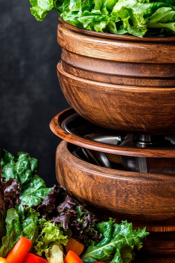 Vers groen in smakelijke houten schalen straalt levendigheid uit - een feest van kleur! Sappige tomaten en knapperige groenten nodigen uit om van te smullen en roepen een gevoel van gezond eten op. Dit kunstwerk past perfect in de keuken, waar het inspiratie biedt voor creatieve gerechten en gezonde maaltijden.