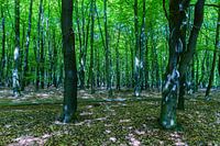 Sallandse heuvelrug bos met fietspad in Holten, Overijssel. De zon schijnt door de bomen.