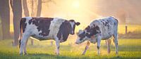 Twee koeien bij zonsondergang in Gelderland