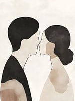 'Samen sterk: man en vrouw' is een intieme, abstracte tekening van koppel dat elkaar in de ogen aankijkt. Samen staan ze sterk. Er is gebruik gemaakte van waterverf, zwart-wit en beige tinten.