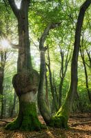 Deze twee beuken hebben een enorm karakter en om ze recht te doen heb ik ervoor gekozen ze verticaal te fotograferen als in een portret. De boom links heeft twee stammen die er vrij dynamisch uitzien en de boom rechts, met zijn rok, ziet eruit alsof hij langzaam naar rechts beweegt. Het was een zeer warme augustusochtend en de…