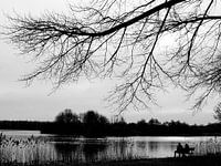 Deze foto toont een moment van verbondenheid tussen twee mensen die samen genieten van de schoonheid en de rust van de natuur.
