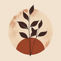 Deze moderne, minimalistische illustratie toont een gestileerde plant voor abstracte geometrische vormen in warme, aardse tinten. Het harmonieuze kleurenpalet en de strakke lijnen maken dit kunstwerk ideaal voor eigentijdse woonruimtes, kantoren of creatieve werkplekken. Perfect voor liefhebbers van moderne kunst die op zoek zijn naar een elegante en rustgevende decoratie.