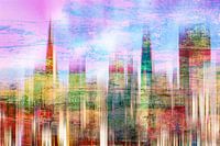 Fotocollage van de architectuur van wolkenkrabbers in het centrum van San Francisco in Californië VS abstract in kleurrijk