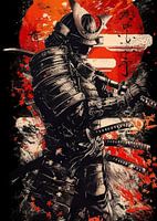 Het kunstwerk toont een geduchte Japanse samoerai gekleed in een ingewikkeld volledig harnas, zwaaiend met een glanzende katana. Tegen een opvallende achtergrond van een rode zon wervelen delicate rode kersenbloesems om hem heen, symbool voor schoonheid en de vergankelijke aard van het leven. Dit traditionele schilderij vangt de essentie van eer, dapperheid en cultureel erfgoed.
