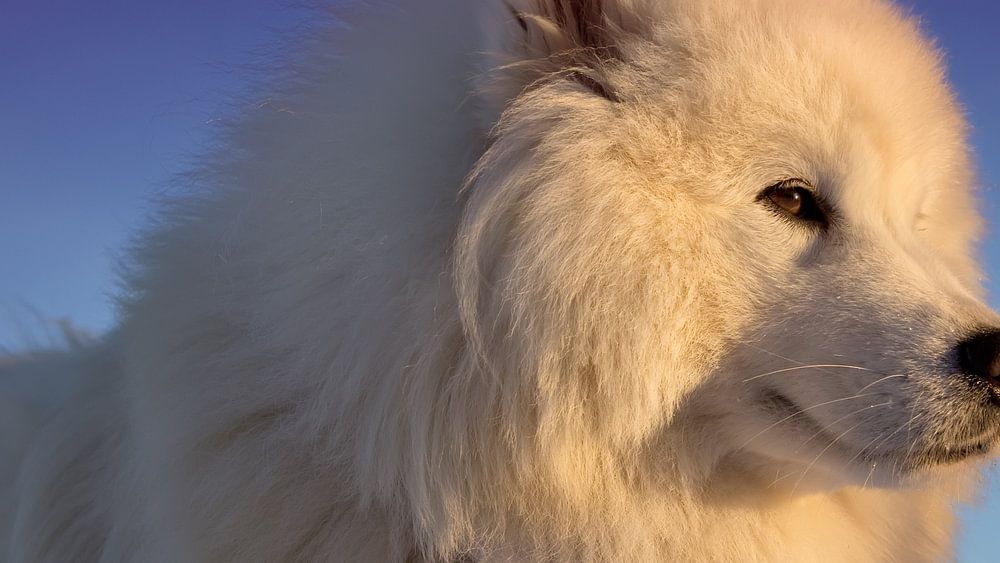 Hondenportret tegen de blauwe lucht