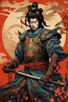 Een kleurrijke samoerai schittert in felle tinten en belichaamt een krachtige combinatie van moed en esthetiek.