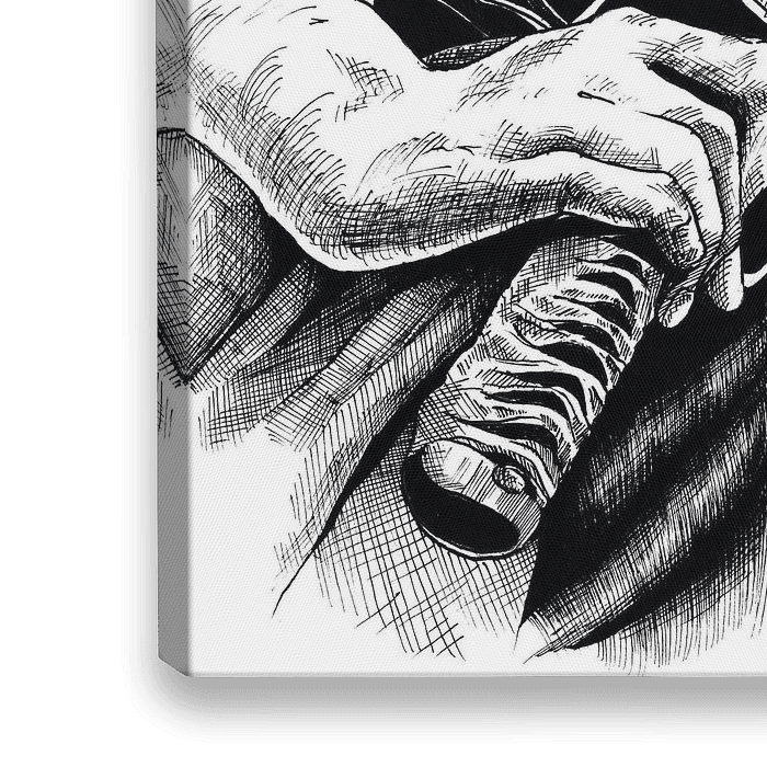 Koop Samurai Katana Japan met handen en rok, potlood tekening hand getekend van InkoDef op canvas, aluminium dibond, (ingelijste) fotoprint, behang en ArtFrame, op maat geprint in Fine-Art kwaliteit.