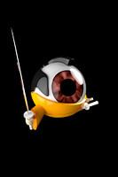 Een grappig samoerai oog in een gele kimono met een lang zwaard.