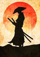 eenvoudige artistieke poster van samurai v6 met vintage stijl