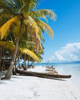 Over ‘San Blas EIlanden Houten kayak op het witte strand op de in Panama’ van Michiel Dros