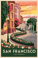 Een schilderachtig straatbeeld vol bloeiende planten en kronkelende paadjes bloeit op in zachte pasteltinten en legt de charme van San Francisco vast. De warme kleuren en nostalgische elementen geven elke kamer een uitnodigende sfeer, waardoor dit kunstwerk perfect is voor de woonkamer, waar het gesprekken kan stimuleren en dromen kan inspireren.