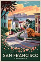 Een schilderachtig tafereel met glooiende heuvels, pastelkleurige huizen en de iconische horizon van de skyline van San Francisco. De bloemenaccenten en stralende lucht nodigen uit om te dromen. Ideaal voor de woonkamer, waar de kleuren je uitnodigen om te ontspannen en kunnen inspireren tot gesprekken over reislust en avontuur.