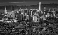 Zwart/Wit opname van de San Francisco skyline gezien vanaf Twin Peaks tijdens sunset